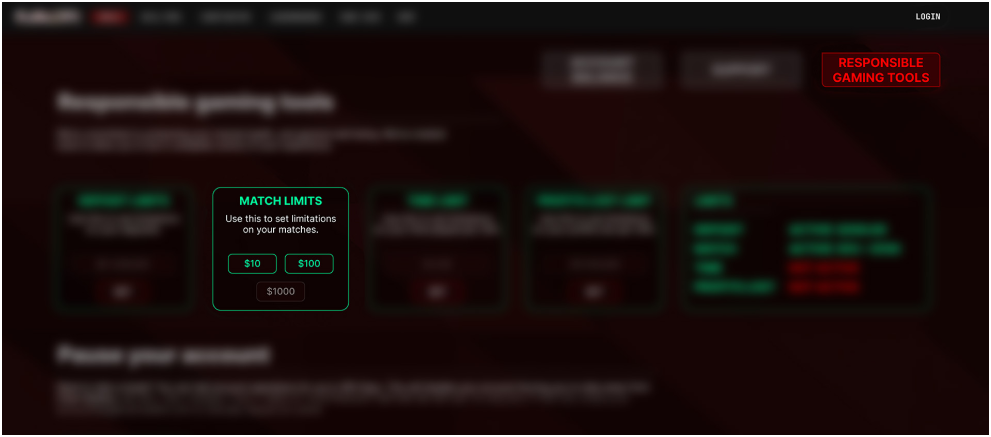 You may setup your match limits by logging into your account on our web portal, and clicking the RESPONSIBLE GAMING TOOLS located in the top right corner.