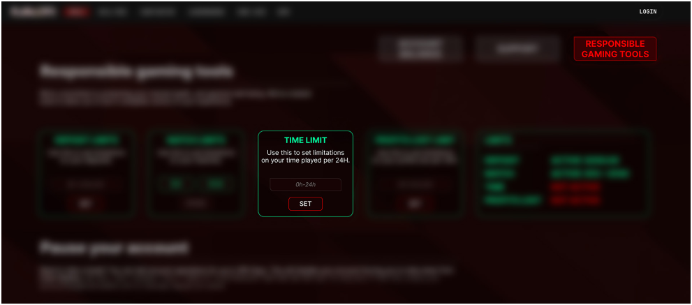 You may setup your time limits by logging into your account on our web portal, and clicking the RESPONSIBLE GAMING TOOLS located in the top right corner.